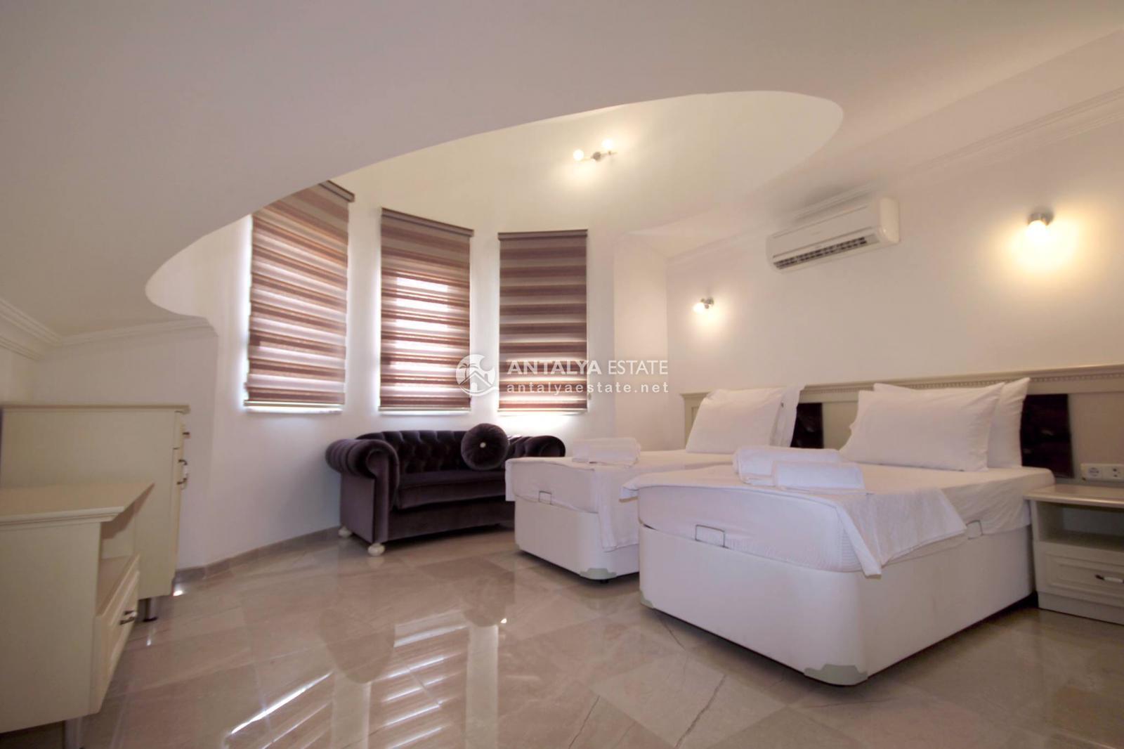 Detached villa resort for sale in Belek Turkey has 3 bedrooms which are located upstairs, the master one has an equipped bathroom and there are doors leading out onto a balcony with peaceful views. There are 2 bathrooms in total. The villa has a parking area for your vehicles which is very big. This beautiful house is fully furnished and ready to be sold at a very affortable price.